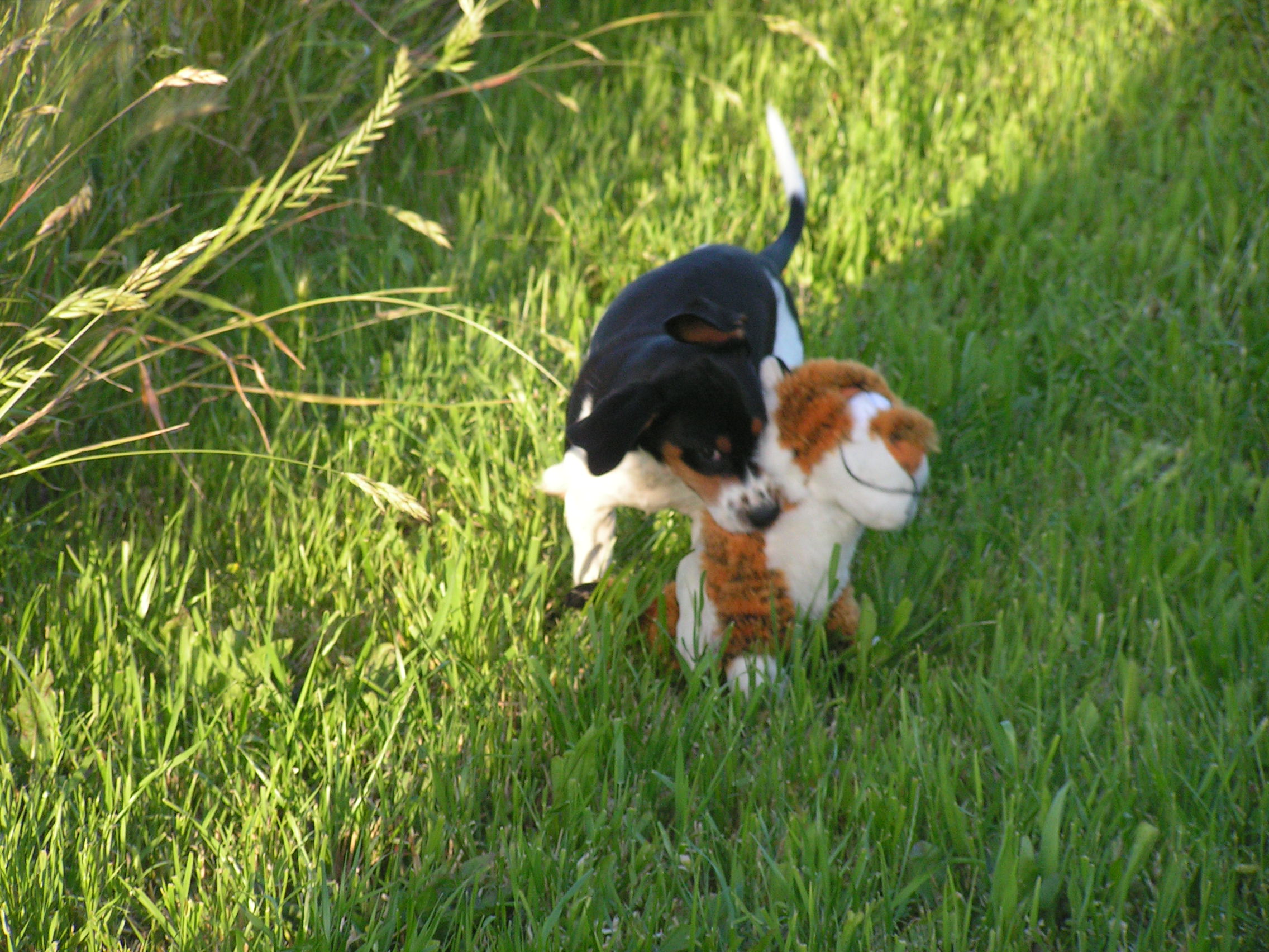 Picked him up last week from Hoff's Big Game hounds. Dad is "PR" Galentine's SW Little Jasper. Mom is "PR" Hoff's Hardwood Kric. Smart little rascal. Loves to bay stuff up and play with the kids. Can't wait till he's old enough to hunt.