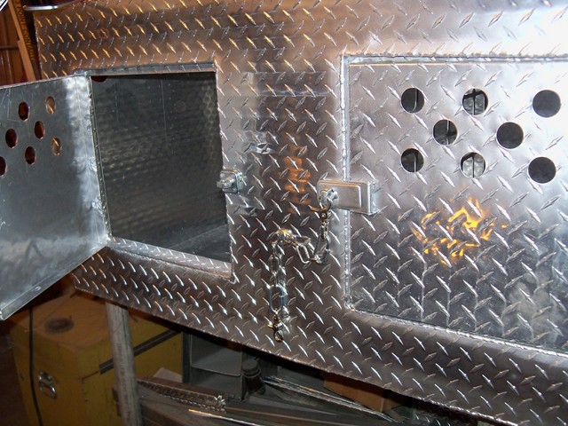 just got done with a couple more, the three compartment is for a flatbed, could hold 10 dogs, the other is for bulldogger, his snow machine trailor frame.