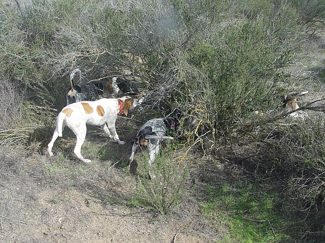 Well bear season has been over in california now for about a month, down south we really had a bad year this year, we bayed a really nice bear in a culvert opening weekend, don't know how that damm thing fit in that culvert but we were unable to take him due to the fact he bayed on state park property. The next weekend we had 2 bears running together and the dogs had them stopped several times but every time we got close enough to shoot they would run again we kept that up for 7 hours before we finally got the dogs off. So my friend jerry has a couple of nice cameron blue tick pups, so we took them out and did a little coon hunting, the pups are doing really good, they are about 6 months old. Here are a couple of pictures. We also had a couple of walkers and a red tick.