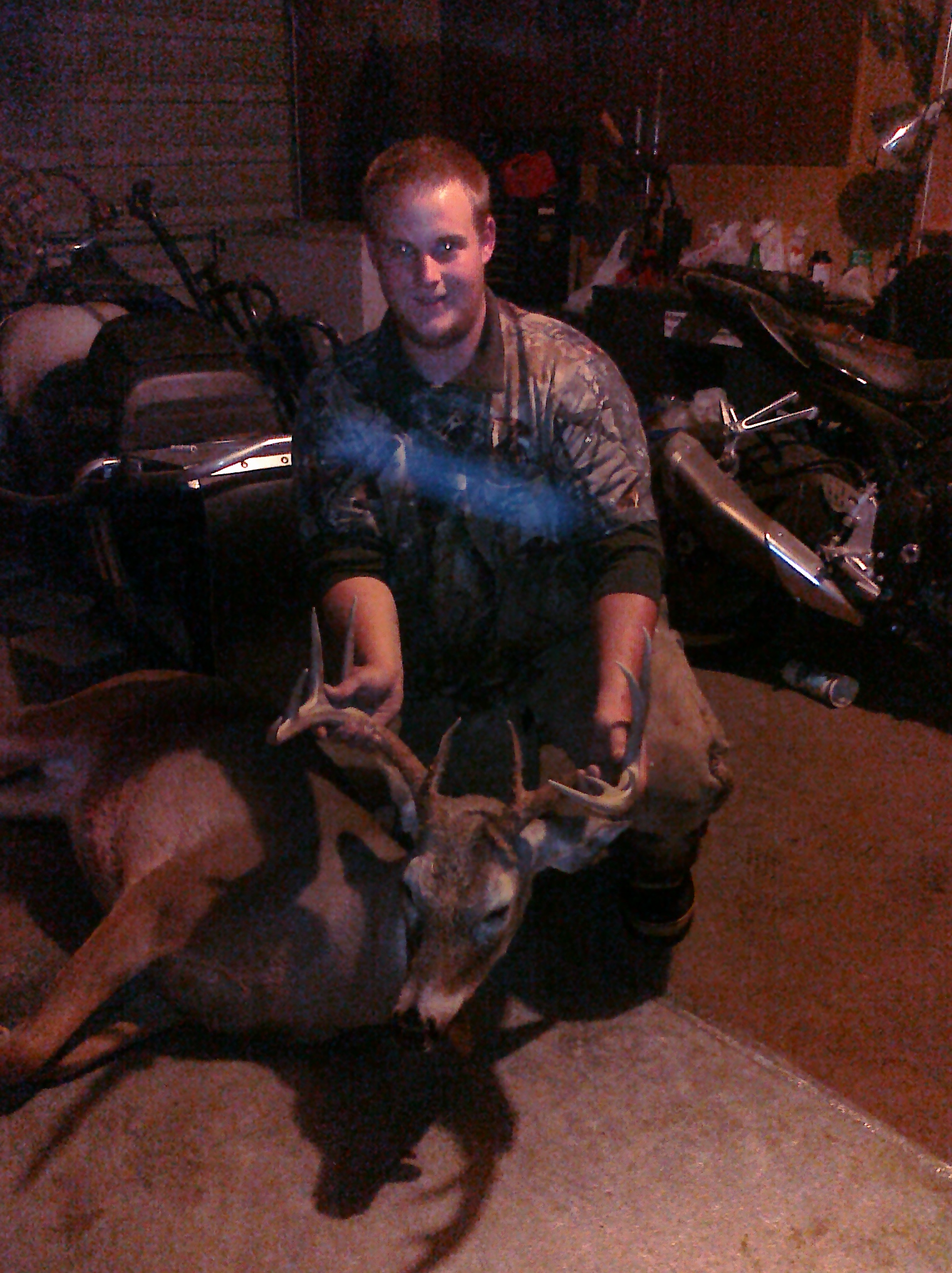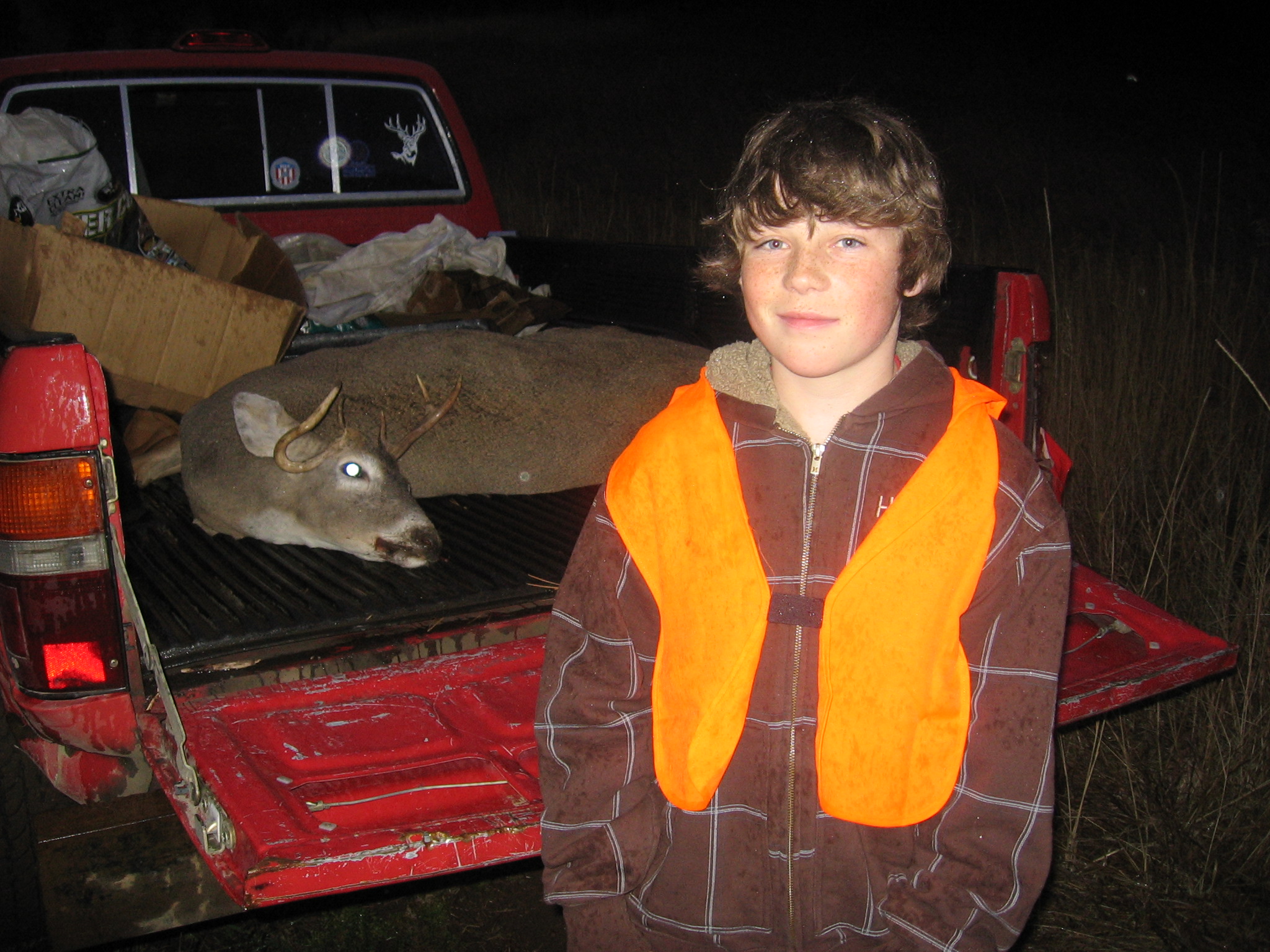 Youth hunter i took out. His first deer, when when we were skinning it out the whole left side of the deer was full of shot gun BB's.