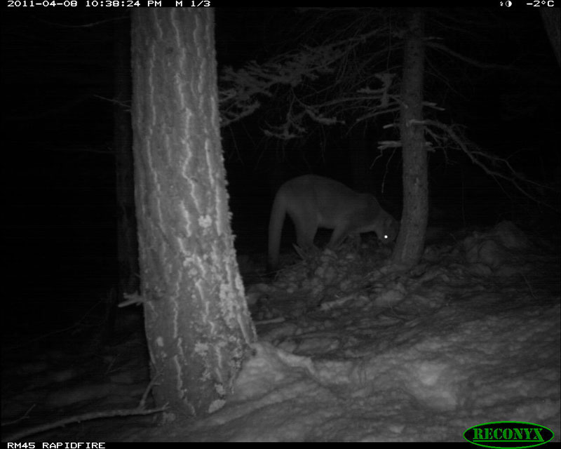 One of our collared females was on a mule deer kill so the Techs placed a camera to get some data.