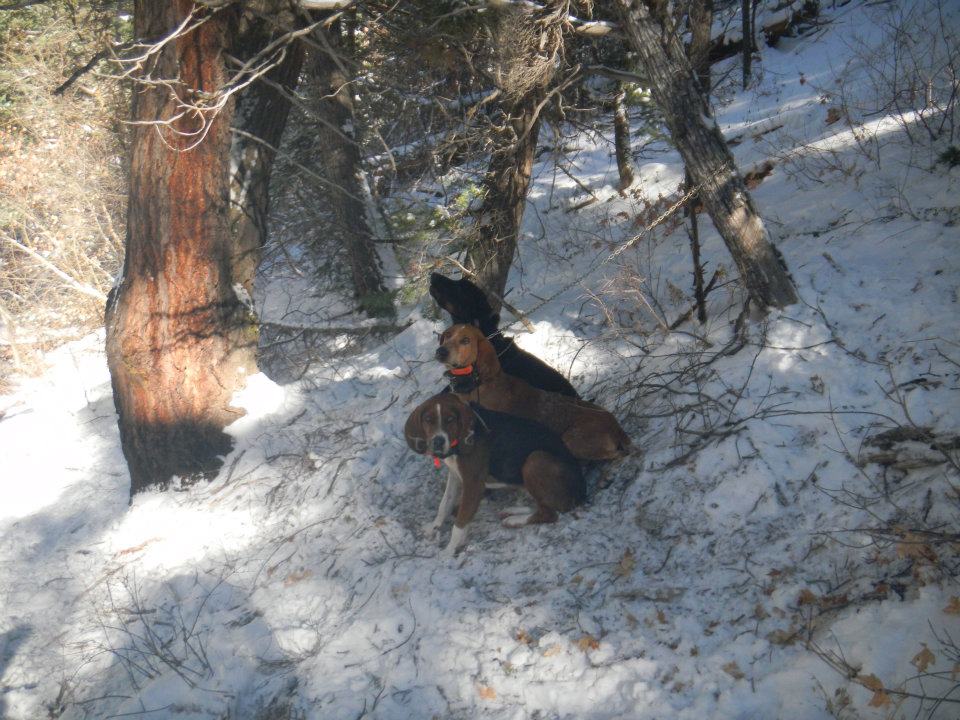 Well, me and one of my buddies decided to go out yesterday and see if there was still anything moving, and to my surprise we ended up cutting a bear track. As cold as it has been I figured most of them would have packed it in by now. Cg had four of his dogs, and I only had 2, one was my old dog and the other was just a year old pup. We dumped on it and ran it for a few hours and ended up with a bear in a tree. Turned out to be a real good day.