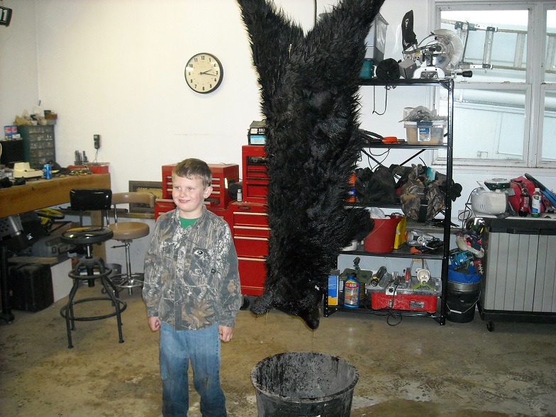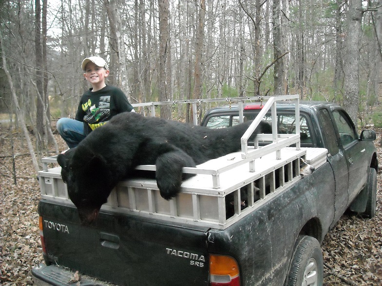 Had another good day yesterday with another young boy able to take this bear. Didn't take my camera in woods with me since it was raining when left the truck. Had a little bit of snow to find the track which changed over to rain right before he treed. Was really happy because one of my 10 month old Plott pups was the lead dog running right in front of my bluetick for most of the race. The bear weighed 170 and was a boar.