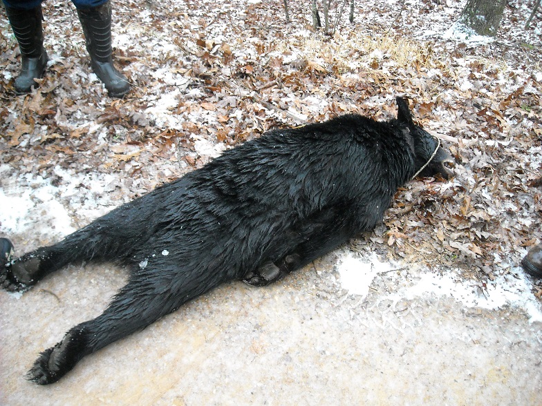 We started season today here in VA. This was the best opening day I have ever had. I struck about 200 yards up the trail from my truck and jumped him a few ridges over in a thicket. Crossed a road and was able to put a couple more dogs in before it pulled the mountain and crossed road again. Bayed up a few times and whipped a few of the dogs off expect my plot female. She took him back across the road before we could get out there and back to the top before walking him alone for the next 3 hours before we got fresh dogs in to get him treed. A 10 year old boy got to kill him for his first ever bear. The bear weighed in at 275 dressed.