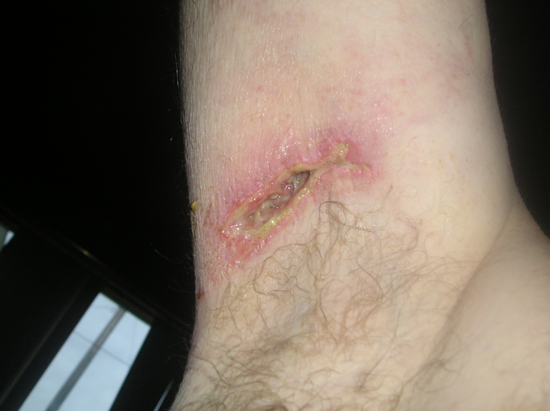 tore the stitches out of my am with my crutches last night and sent brad a picture to hear what he thinks I should to take care of it because he is the best/cheapest vet I know. so he said he has some leftover staples in his supply bag and he would gladly staple it back together for me. maybe he IS the good guy here? what a nice offer don't you think?????NOT!!!