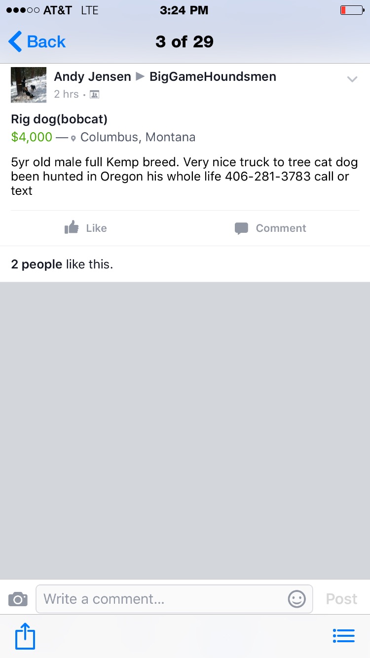 I have no dog in this one as well but i will say that i have had 2 dealings with Andy. i bought a young dog from Andy and the dog was exactly what he said it was. that dog was making a real nice all around dog on multiple species of game until i accidentally ran him over. the other was i bought a female pup from Andy and he was straight forward on what the pup should turn out to be based on previous litters and he was spot on. i sold the dog to a coyote hunter because that is what she was better at. i would never want anyone to get screwed over in a deal and there is always 2 sides to every story but my god how many stories do we have to read about buying $4,000 dogs and the buyer not being happy with them. go hunt the damn dogs before you buy them. then you have nobody else to blame.
