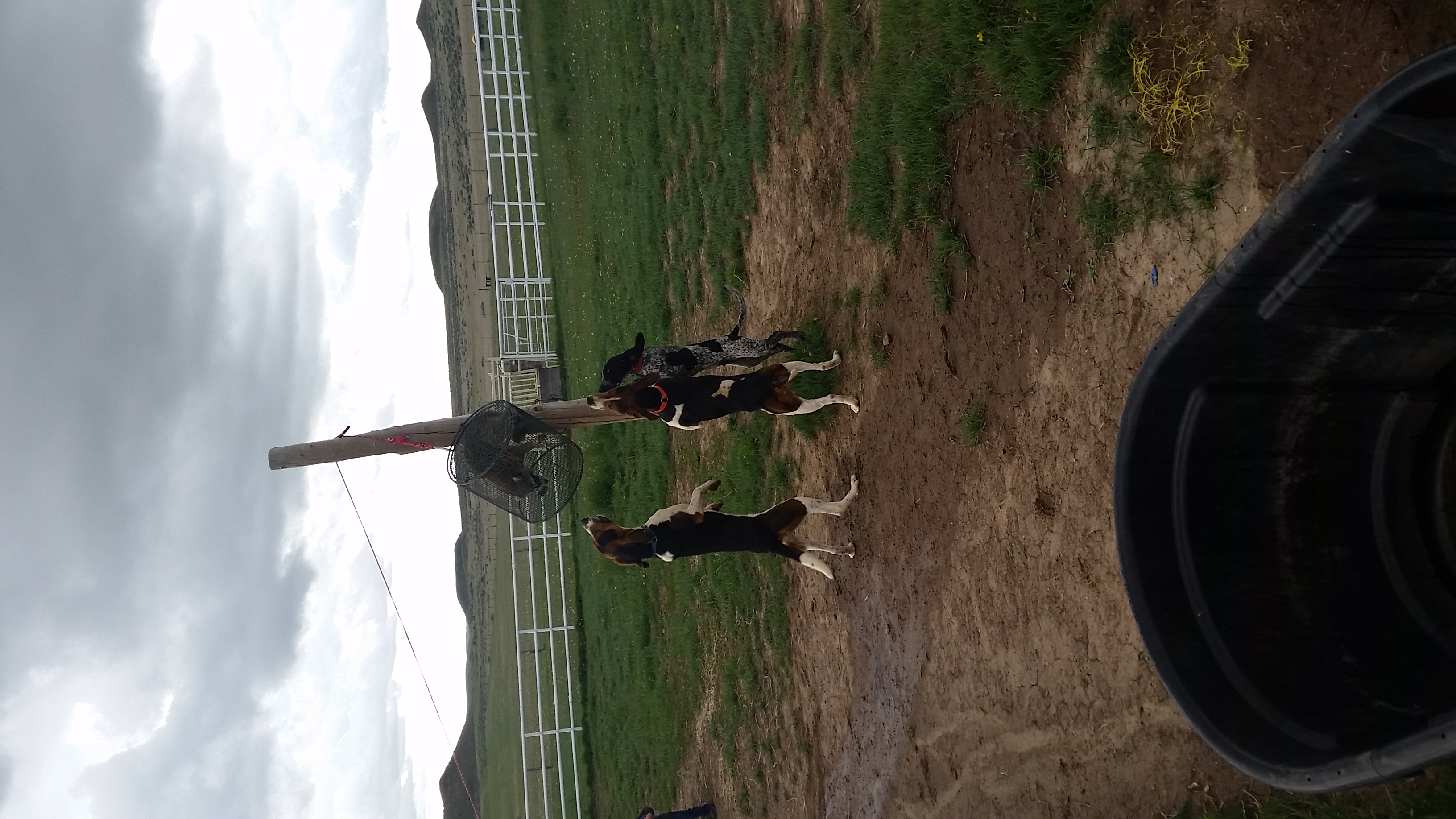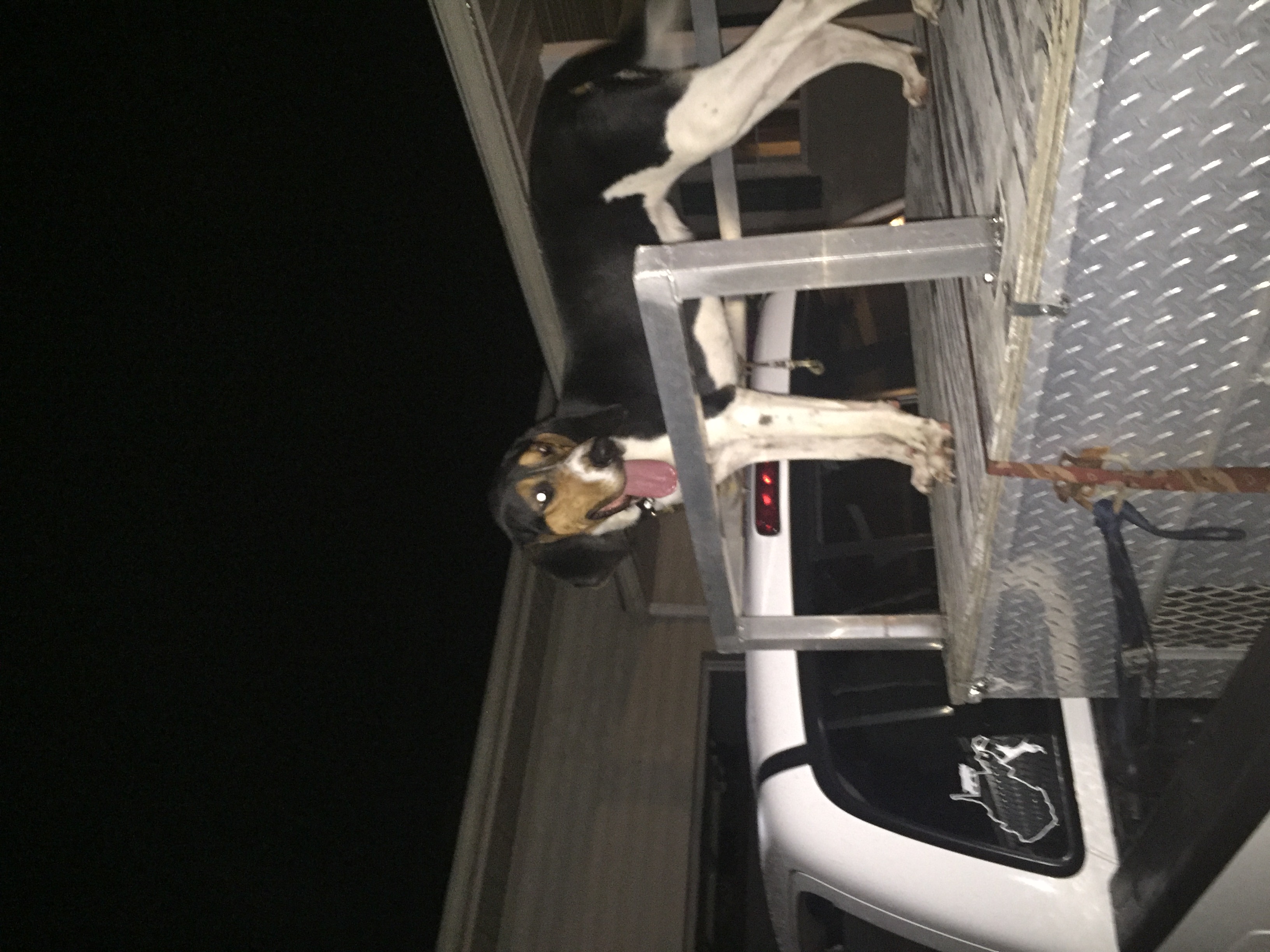 Here is my Belle dog. She is a four year old out of of a cross from a Dewey dog and a kemp dog. She is half treeing Walker/half trigg.