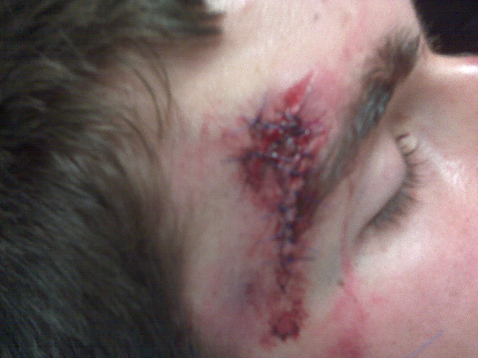 I am including a pic of his head before and after the stitch job. Don't look if you are faint of heart. It went all the way down to the skull.