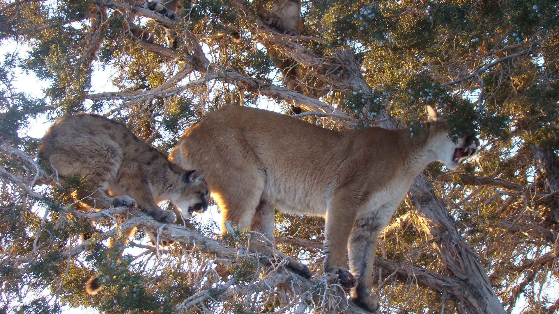Started a single cat going south well turns out she had gone to get her kittens to bring them to some dead cows that the farmer was feeding to the lions ( go figure) well she was on her way back and crossed a bunch of hounds that put her up a tree. there were 4 kittens and the mom all in 1 tree. come to find out she had been caught in a bobcat trap and the fish and game had to come turn her loose, her front foot was pretty tore up. I seen there tracks a little later and they were all still together hope they all made it will make for more to catch next year.