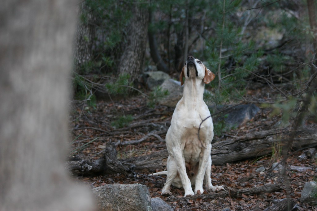 He didn't bark much while on trail and didn't bark alot on the tree either but he realy watched the critter and kept them from jumping out. He was very fast and seemed to be able to run day in and day out even up til the end when he got cancer and had to be put down, at around 16 years old.
