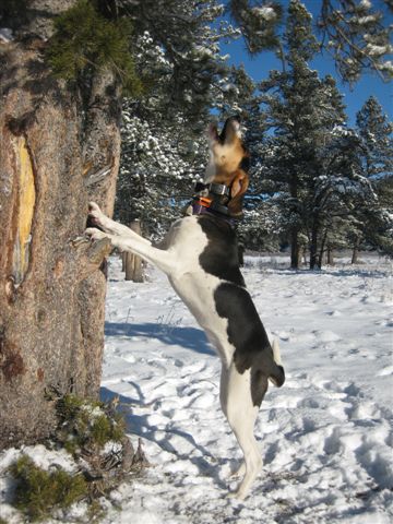 Andy, I forgot to mention how busy she stays. She is into everything and everywhere. Very athletic! If I road her she is on the banks, over in the hollows, then up on the ridges. But shes never to far out. One shout and shes right back to ya. We are suppose to get snow this weekend. So next week might be bober time.
