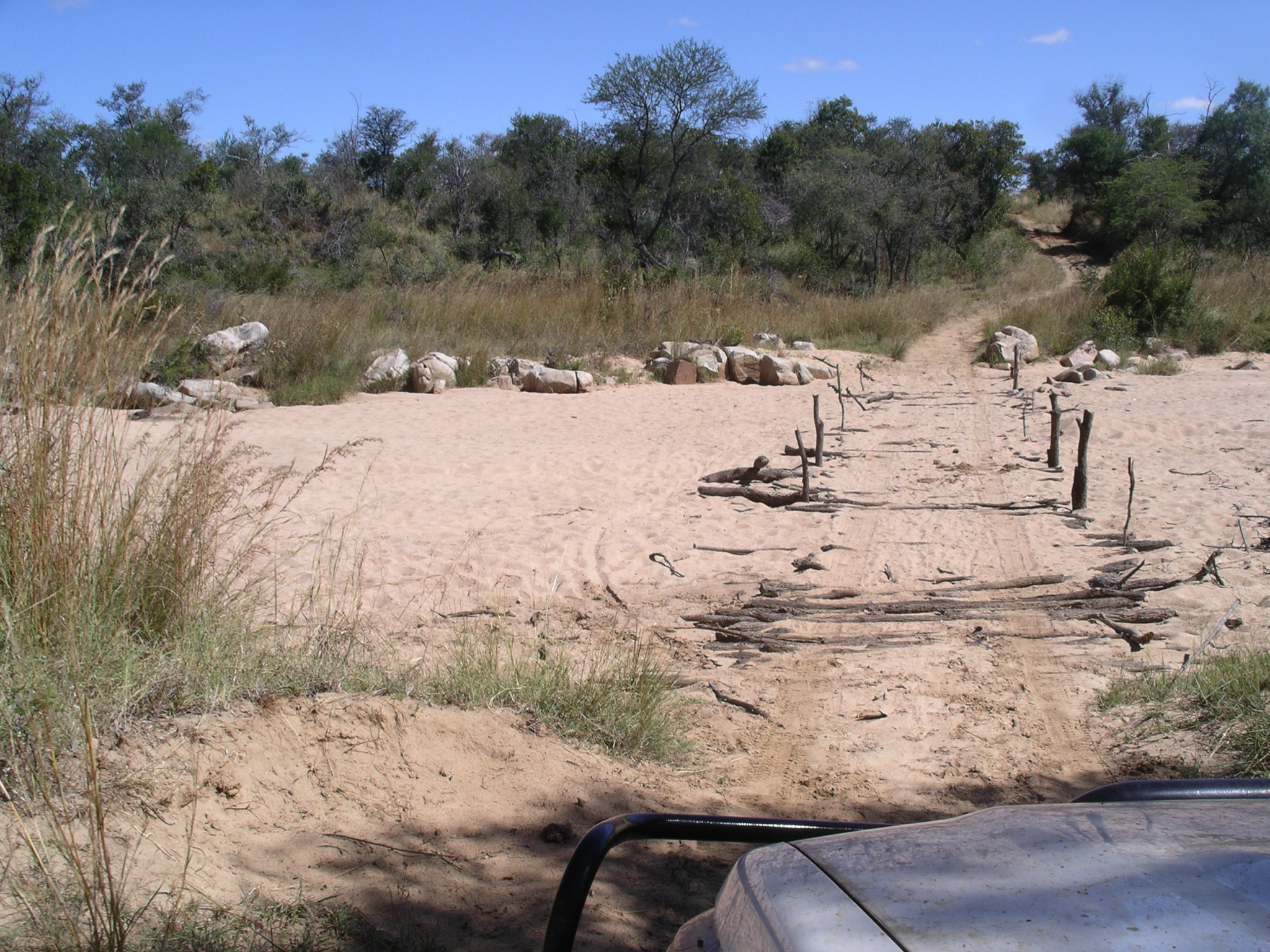 This is a crossing that had to have poles cut and layed the entire width of the wash so we would not get the Land Cruiser stuck in the sand...