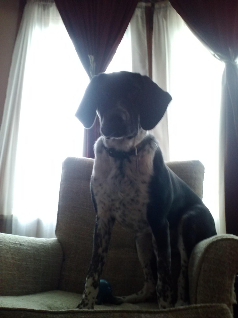 Ok here's a more current shot of the one we thought was a bluetick mix. His daddy was a black lab though. He does get up on our tree though with our redtick (mostly after squirrels because we live in the city, though we have tons of coons in the neighborhood.) I have to get a more current shot of the other pup as he's bigger to see if you think he's what he looked like as a pup.