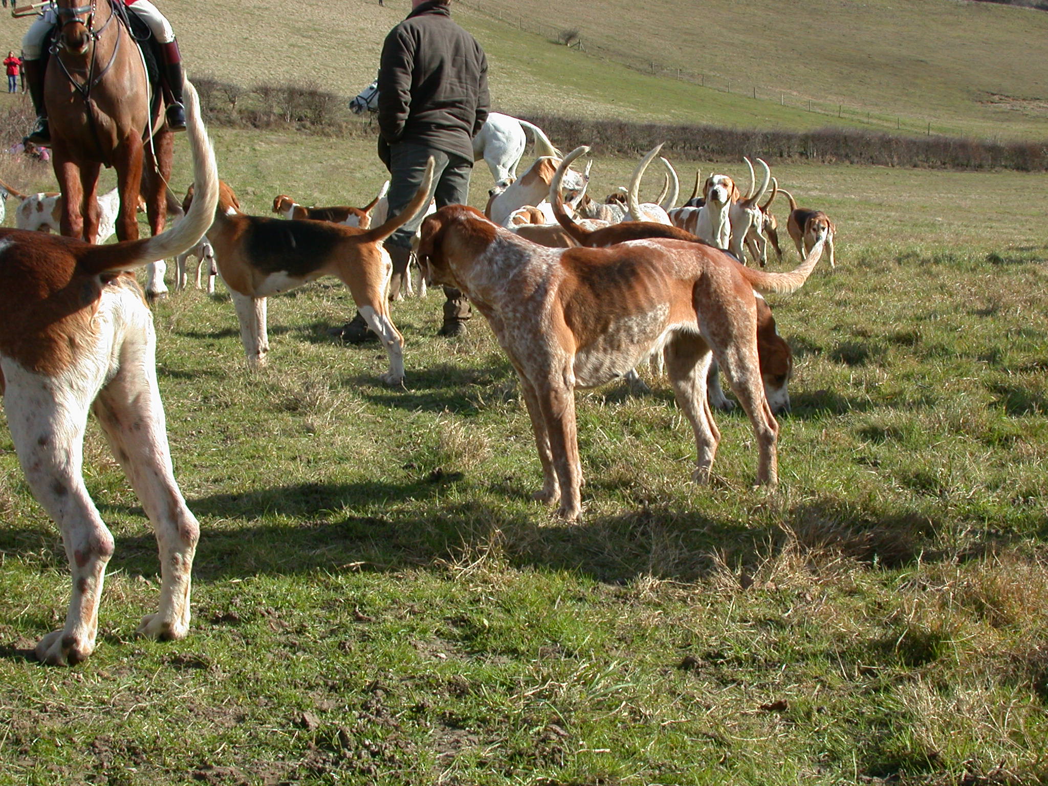 Foxhounds are not expected to dwell on a line too long but to cast forward and run on.It's all about a fast hunt for the horses.