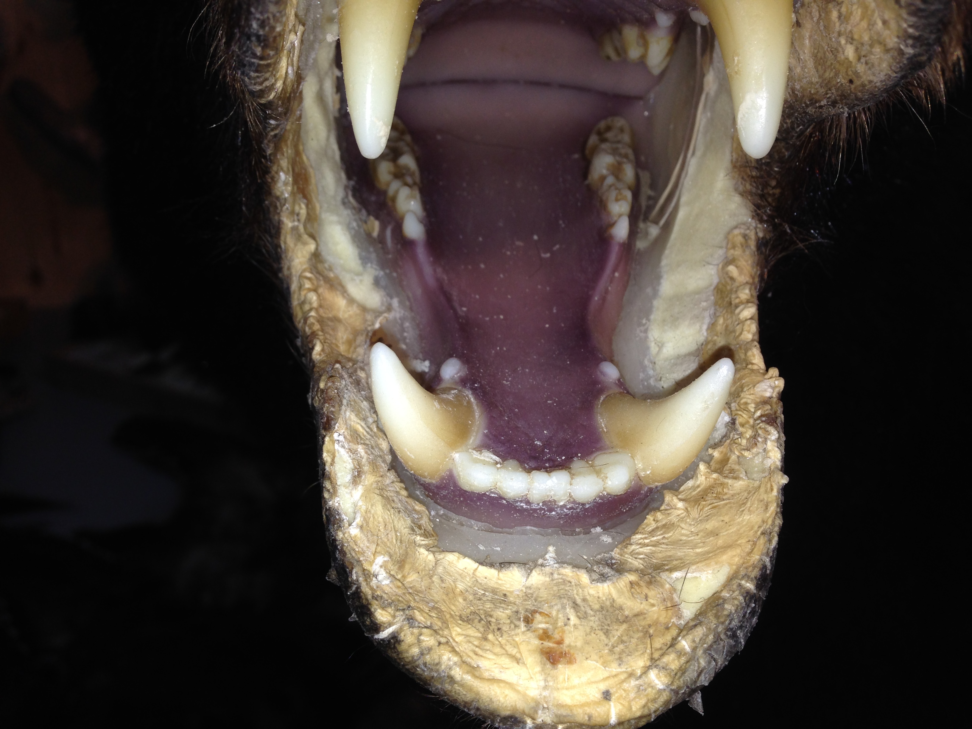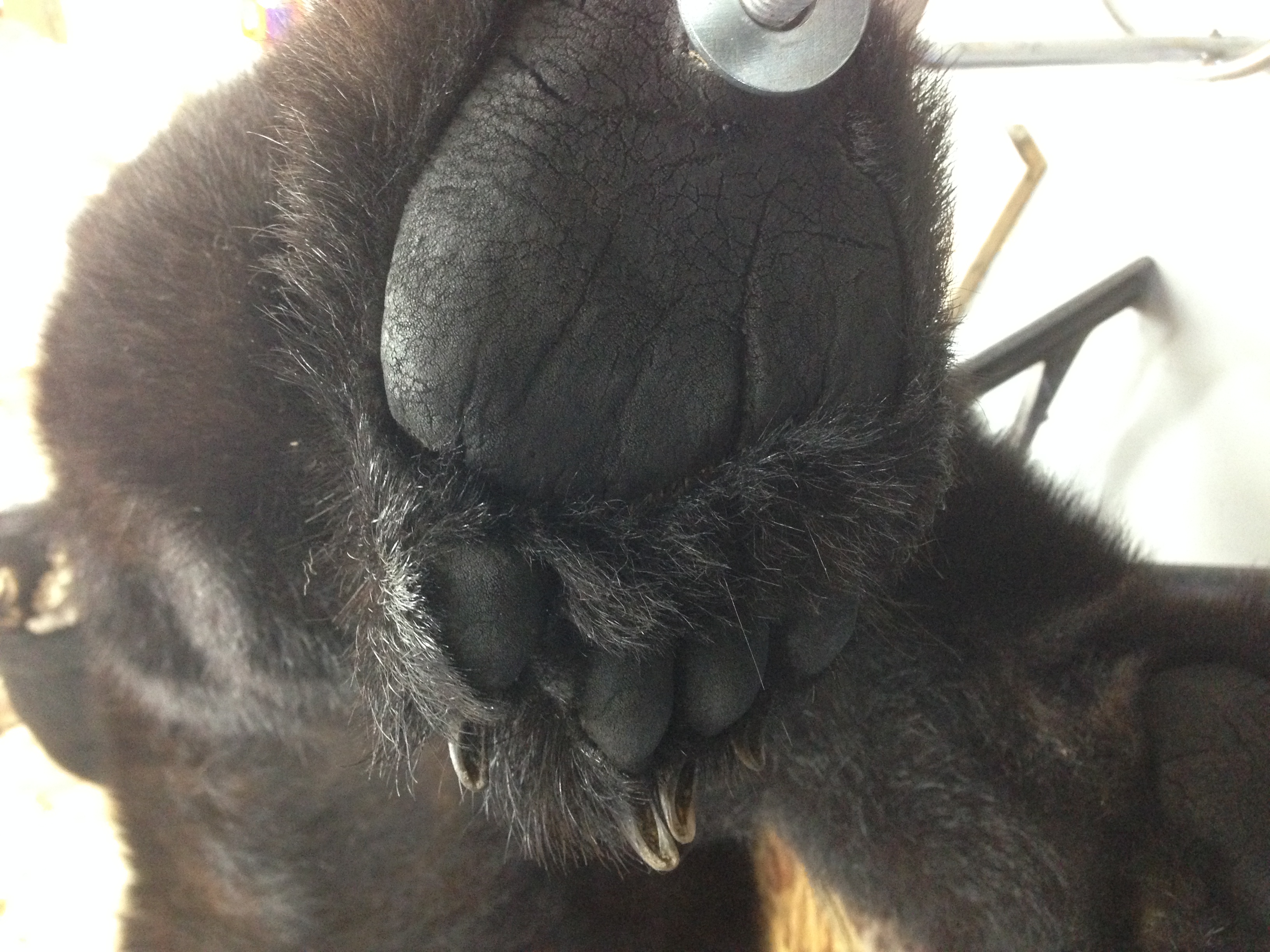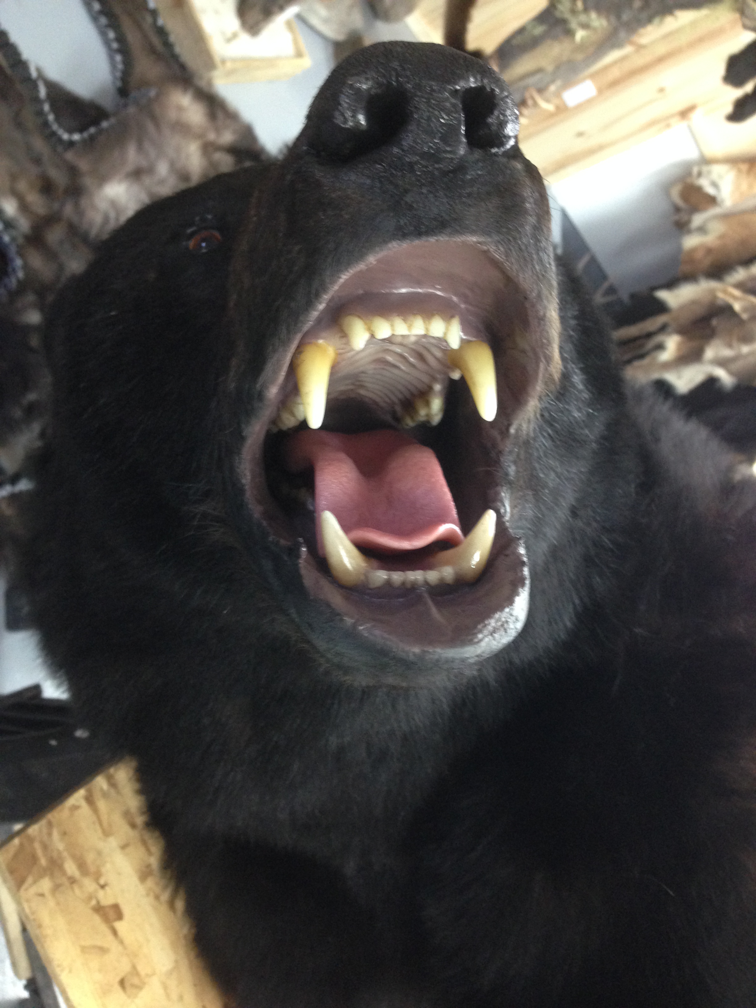 The pads on this bear needed some putty because they were cut during skinning so to hide that seam, they got some putty. I do these in a soft black color, I don’t want them to look too dark. Being a black colored bear, most of the areas around the nose and eyes get black paint. This is done with an airbrush. The mouth is a different story. It gets about four different colors. Once the paint dries then a light coat of clear to seal it and this mount is done.