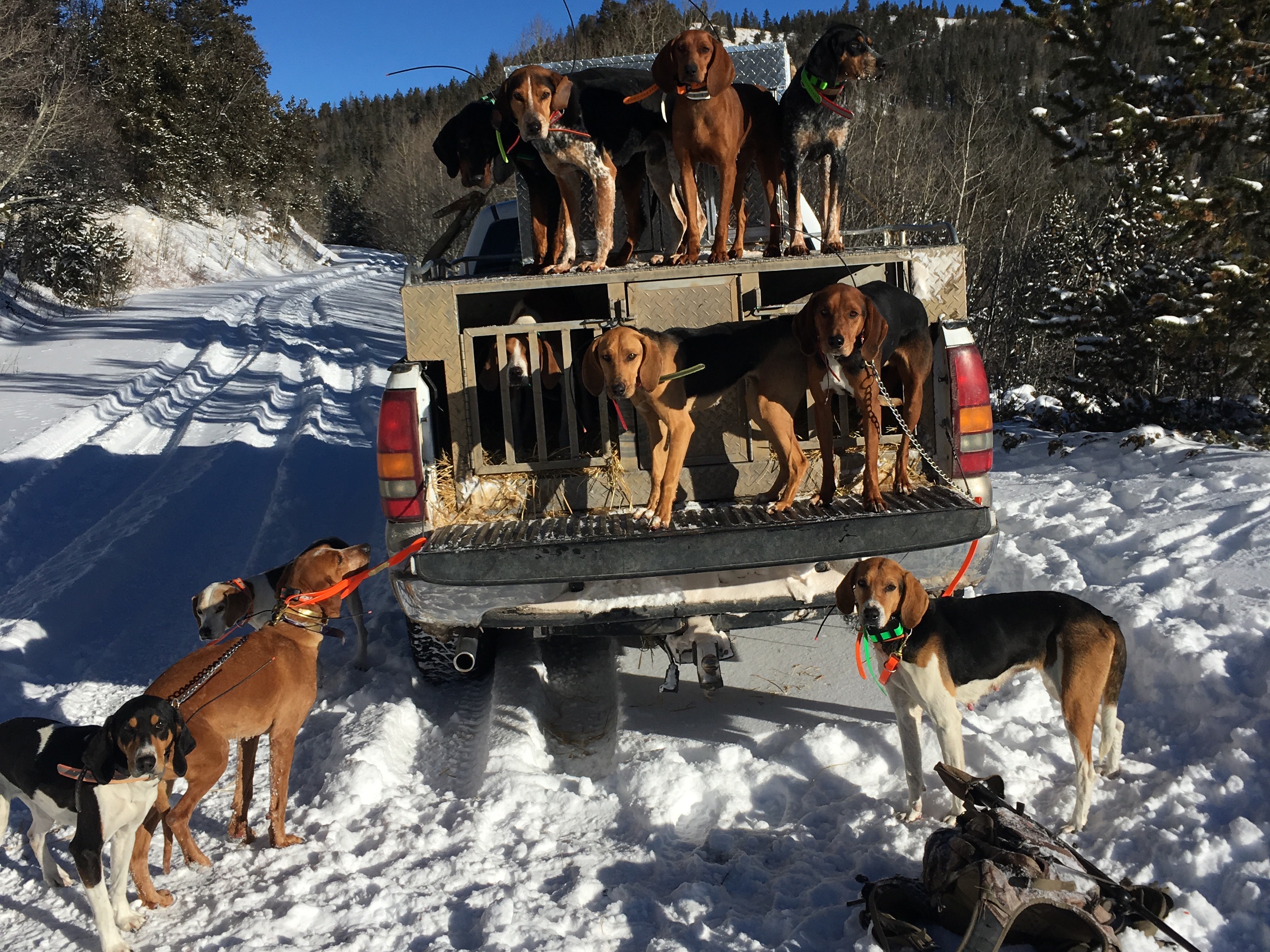 Yes Mark that is the famous Boomer hound! That son of a gun is a pretty damn good dog. That kemp hound has really helped my entire pack ! He is a hard going ,easy handling cat running son of a gun . And he just gets better every time. He is really adjusted to this dry snow environment . I know what good hounds are but sometimes they just leave you scratching your head in amazement ! and I think all of us houndsmen have done that when we were out with are hounds ( good or bad) WHat a RUSH !!! Timothy Morgan