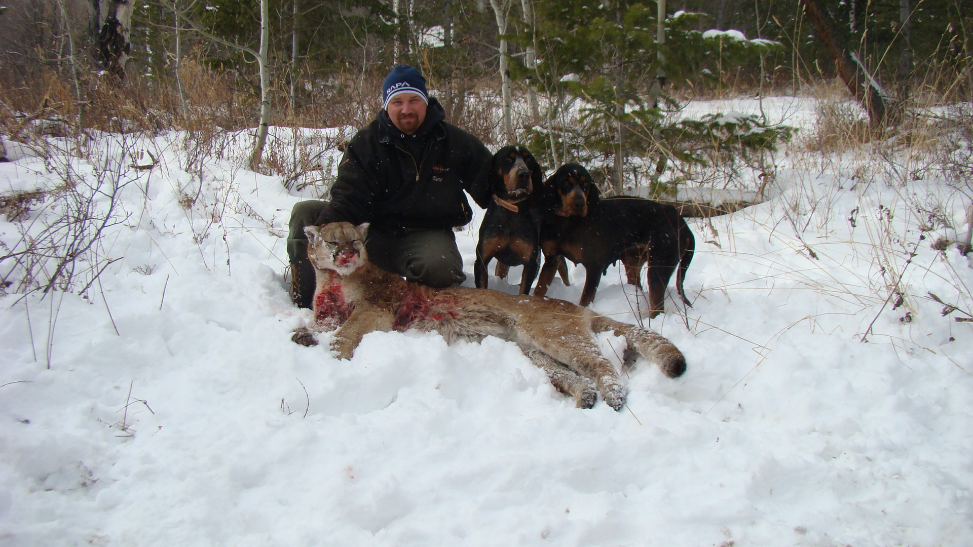 Found a good track Friday morning of a cat that I have ran before but never caught. There was allways some malfunction with the dogs, dogs couldn't settle down, track stomped out by moose, etc... thinking this time is going to be different we put dogs down the track at about 7:30 and the race was on. We grabbed packs and started after the dogs being there are no roads for quite a ways in the direction they were headed. We caught up with the dogs after about 1 mile due to the track being washed by a herd of elk. We circled the mess and found where he had came out and restarted the dogs. After 5 more miles and 2 more drainages we hadn't caugt the dogs again or got the cat jumped so we turned around to go back and get the truck because the dogs were still 2 miles ahead (GPS) and headed to a canyon with a road in it. We got back to the truck about 2:00 and about 12 miles (total) later (worst day).