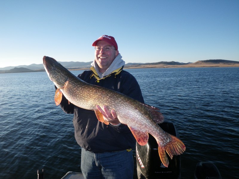My son in law is a full time fishing guide. Oct. is his big Pike month. This fish was caught and released yesterday. This is the third fish caught this month that would have been the new state record.