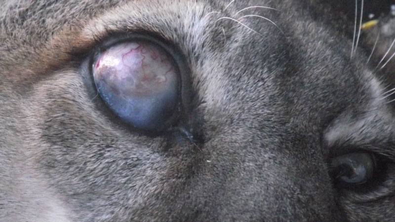 Recently killed a big tom that was tore to shreds and blind in one eye... clouded over though not swollen and abscessed like that.