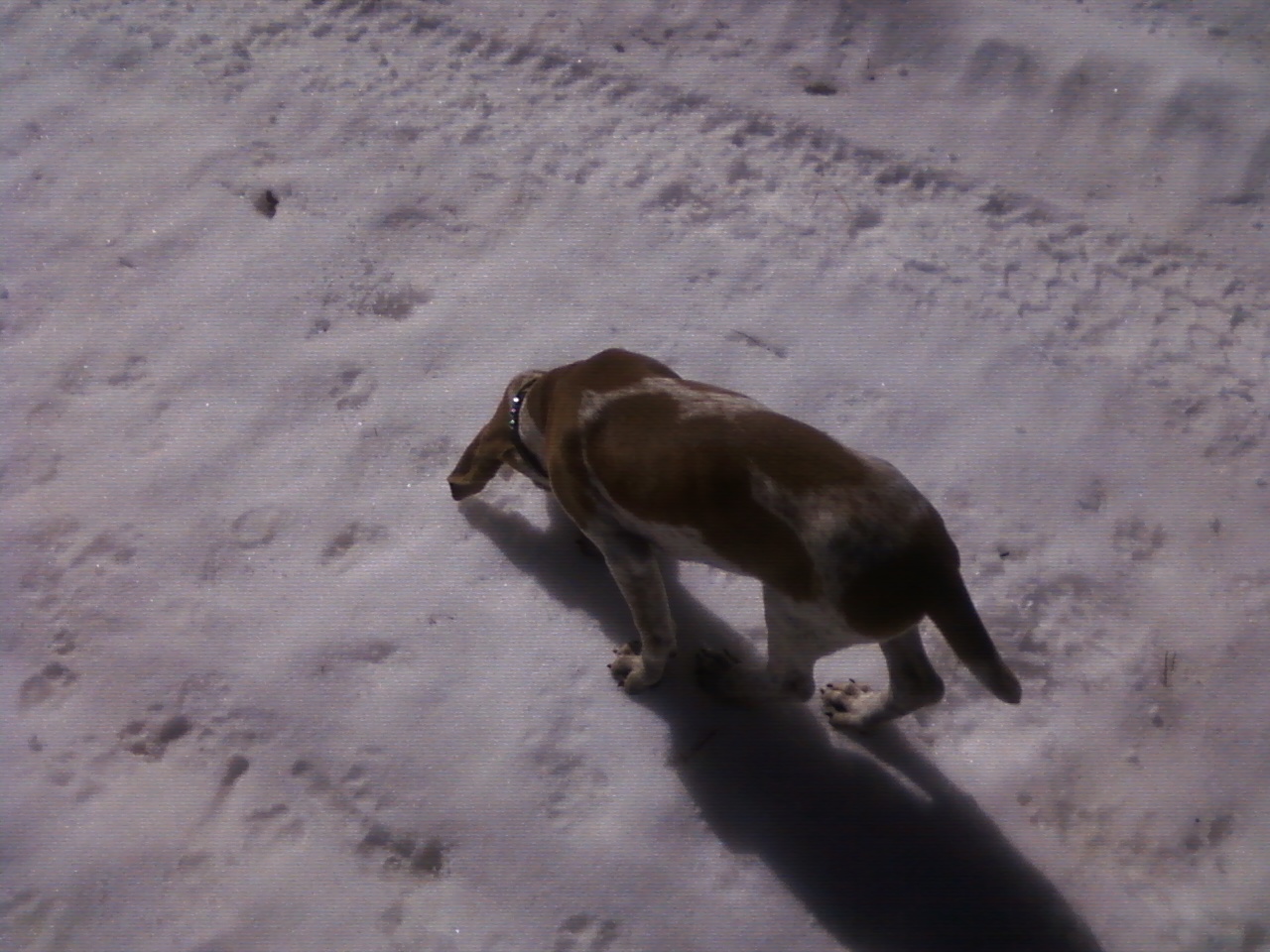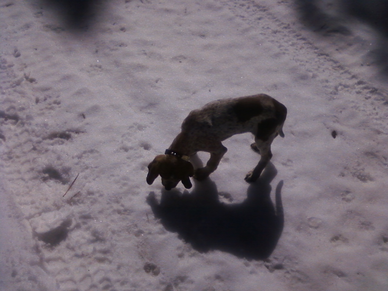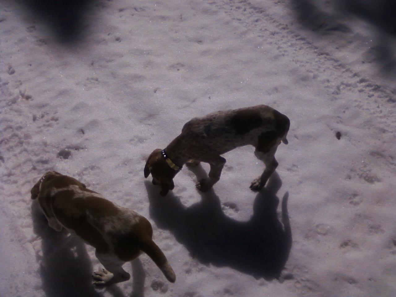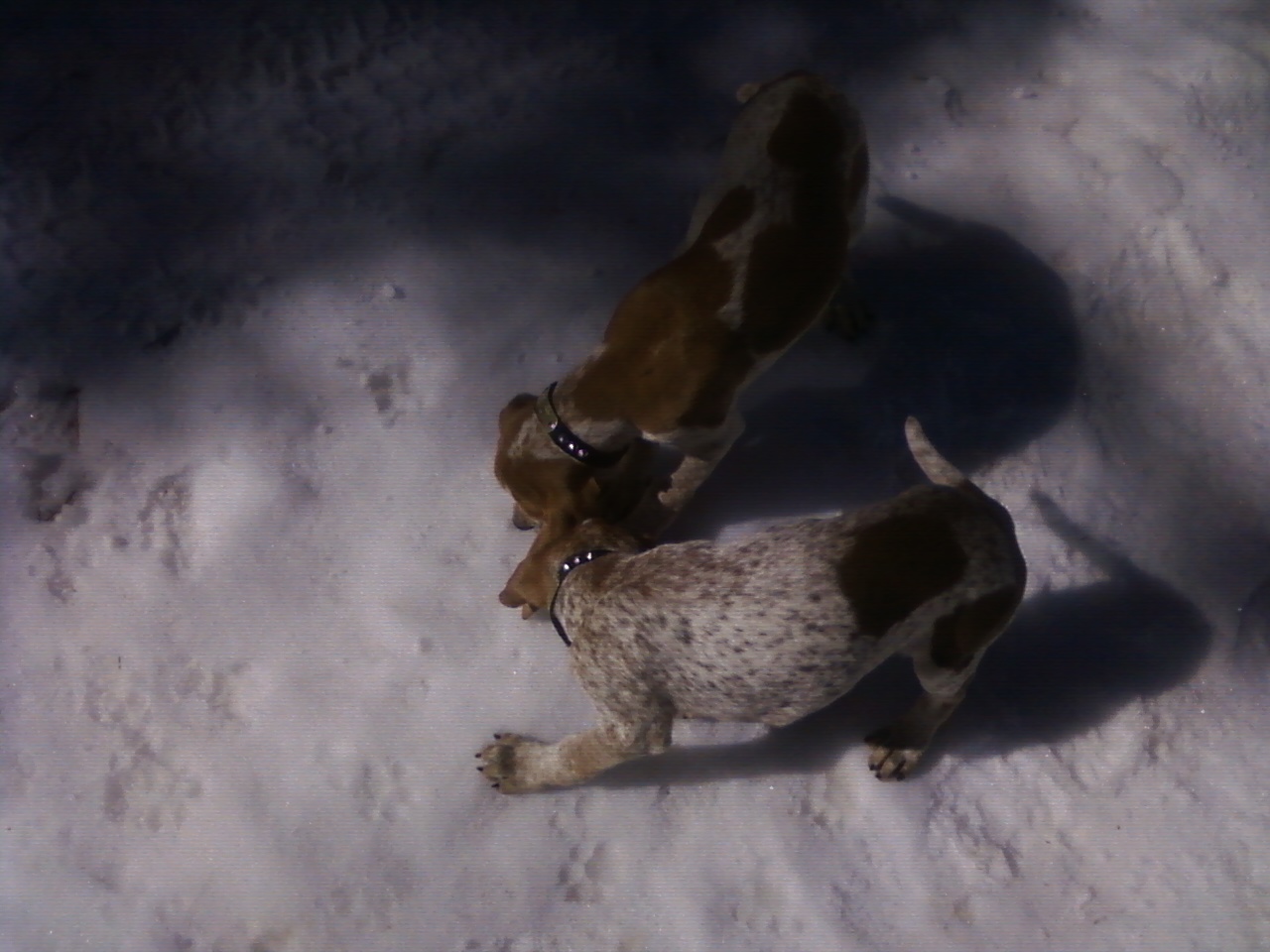 Well, after a long wait and some help from a very good friend I finally have my new editions to the Big Horn Posse. :) I am so excited to have them. The female is a cool dun color redtick I call Puma, cause she is the color of a puma. :lol: Onza is also a cool colored redtick hard to explain his coloring, little bit dun colored with red and blue mix going on. I took them out hunting this morning and the ranch I wanted to hunt I noticed had M-44's all over it :evil: Hate those things. Ruined a prime lion hunting spot. So left there and decided to try to get up to the top of the mountain and hike around. Got ALMOST to the top before I got sucked in the edge and pulled off the road. I wasn't stuck too bad, but didn't bring a shovel and didn't want to bury myself more so I called for help. I let the pups exprience their first look at snow while we waited. I took some pics of them messing around in the snow :)