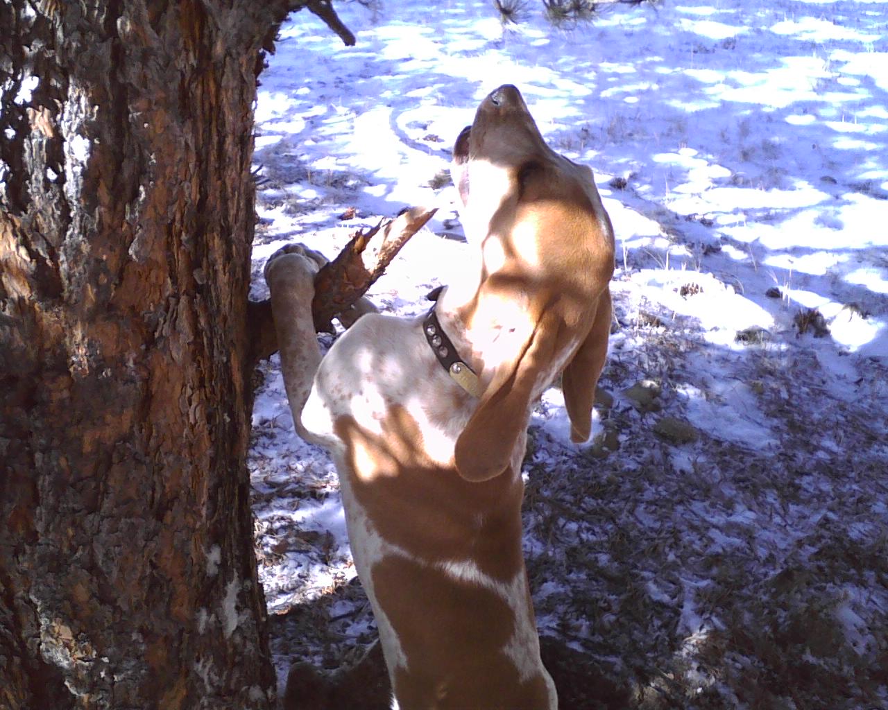 Poppy lived to the ripe old age of 14 years and and was active and still treeing lion, bobcat and bear up to her last months. Not sure how many critters she treed in her day but it would certainly number in the hundreds. She was crossed in the famous Big John and produced Rowdy 2 who was Josie's sire. Josie was Baldy's mother and his father was my great old strike dog Gunner. Not much more needs to be said about that cross, other than it worked.