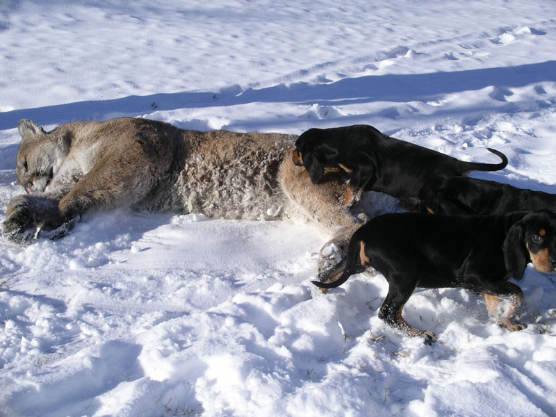 A couple B&T pups that are now 5yr old hounds on their first lion kill.