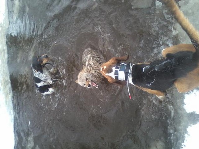 Al, that tri colored dog (male)came from an accidental breeding of my old girl. I try to use his brother strictly for cats in the first part of winter. Every morning I try to catch a cat in the morning before I turn to the yotes with different dogs. Been thinking about keeping out a couple dogs strictly for cats this winter if I continue to find a track every day I'm out.