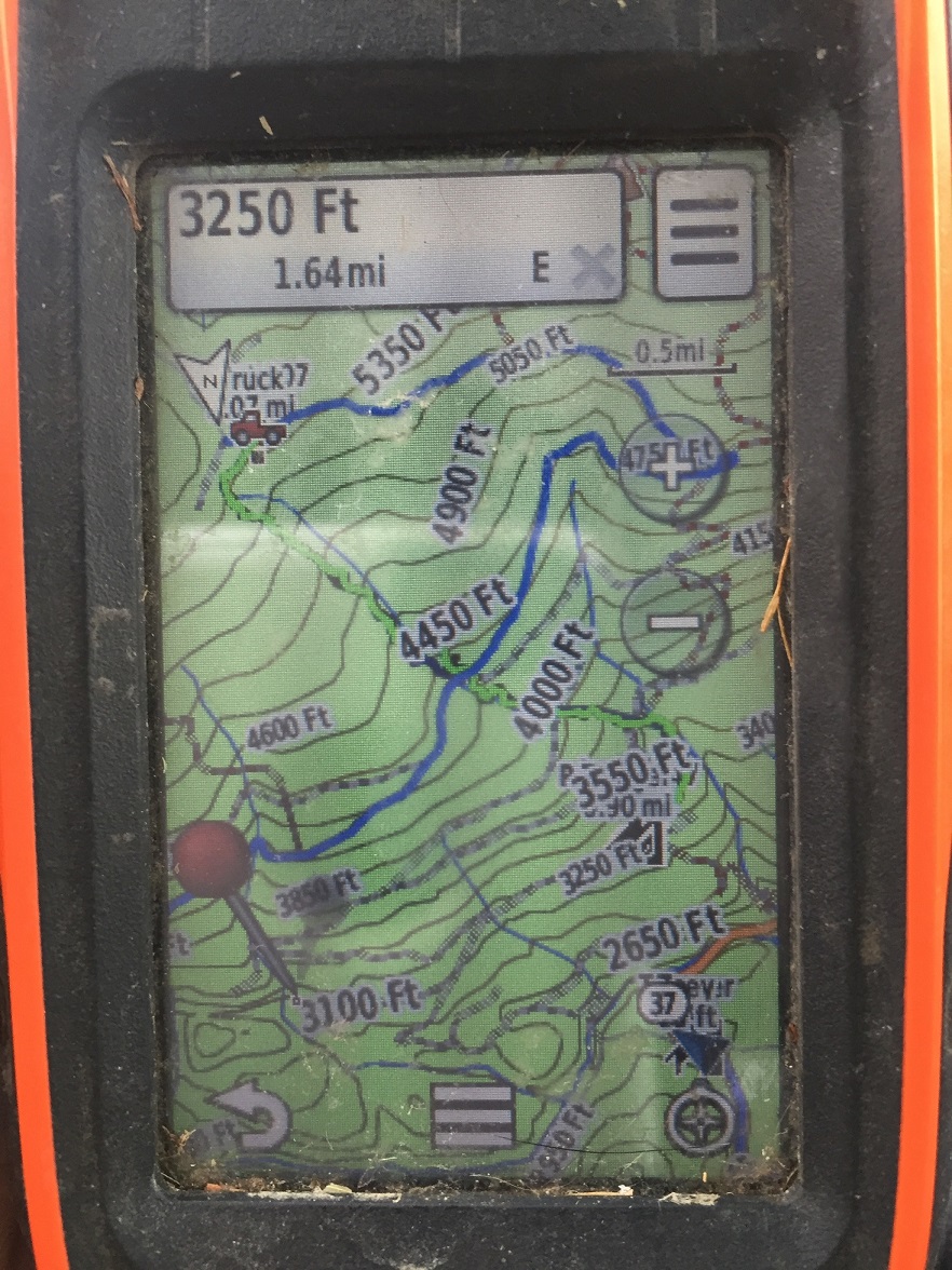 Race #5 met a friend with hounds. Turned loose June & Ranger. Friend turned a dog in to but his dog wouldn't go. Cold trailed it a mile or so June was a 100 yards in the front of Ranger when she jumped it. The attached picture is June's track, she jumped at the highest point. Went downhill 200 yards made a corner and went about 150 yards and treed it.