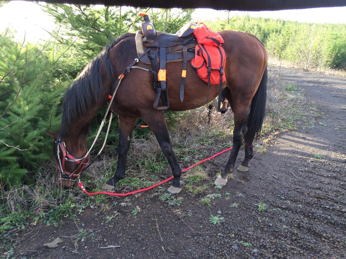 I have used him the last 5 years and don't need him any more. He is around 10 years old the only thing he don't like is the head of the elk. I just turn him loose on a end of a road and he just stays there and eats then when I'm done I get him off the end of the landing. He is 16 hands $1500 call or text with questions.Troy