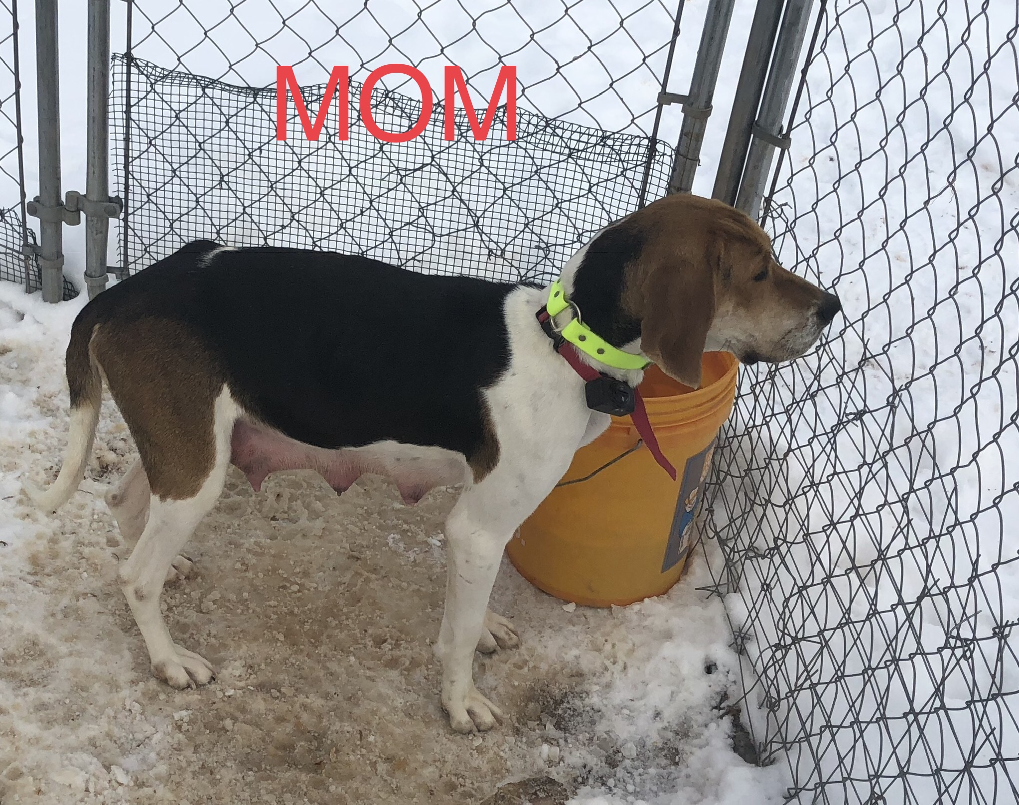 Mother is a UKC Registered walker, she is heavy Finley river bred. She is a 35lb athletetic fast hound that can really cover some ground, She is young but has been making races since 6 months old she is a head up fast track dog with a medium nose, she is super gritty and a hard natural tree dog! She has a booming voice but is very quite around the house, she loves attention!
