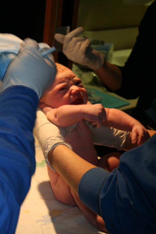 Laura and the baby, "Bradley" are doing very well. in the begining things were looking like a 15 hour labor, but at about the 5-6th hour they just skiped a few steps.. So we were glad to have a 7 hour window from the first phone call to the Baby...