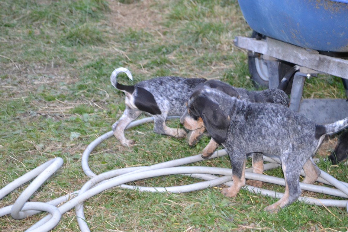 Brooke is a joy to hunt, she does have a limited tolerance to younger dogs playing around with her (especially at the tree) She is a typical Cameron hound, cold nose, bawl on track bawl on tree, of note the one female pup we still have from her last litter has a chop on tree ( actually won a treeing completion with her this yr). She is a pretty a blue tick you will see. She will not leave a tree but I would only call her a ok tree dog. This is one of the traits crossing with spanky I want to improve on. I have 4 pups listed for sale in the classifieds plus the one I donated to a houndsmen that was hurt and that will be it for a while on the spanky pups. I do have 2 more breedings but these pups will be crossed with a Cameron male then at that time I will evaluate and may use spanky again or breed back to a Cameron. Of course that is yrs down the road. I do have people interested but no for sures yet. I do have some sold that were spoken for long before this breeding took place. If any one is interested I would pm sooner than later or I will be paying some buddies south of the border to hunt these dogs. The pups are 13 days old all are doing good, all have their eyes open and its to soon to tell but it looks like most pups will be dark like the camerons. Thanks for all your interest and I will say it again it's not cheap to get in to genetics and its not cheap to get in to spanky blood. I know this is a lot for a pup but if I found spanky cross Cameron pups for a $1000 I would be buying 2 or 3 its a lot cheaper than doing it youself lol