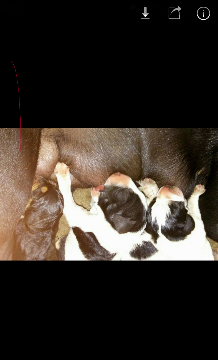 New litter of pups born this morning she had 6 but 2 didn't make it . Left me with 2 males & 2 female . Sure hope these 4 make it.