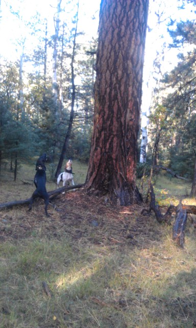 That is a big ponderosa. Looks like your dogs are pretty fired up. Keep on going.