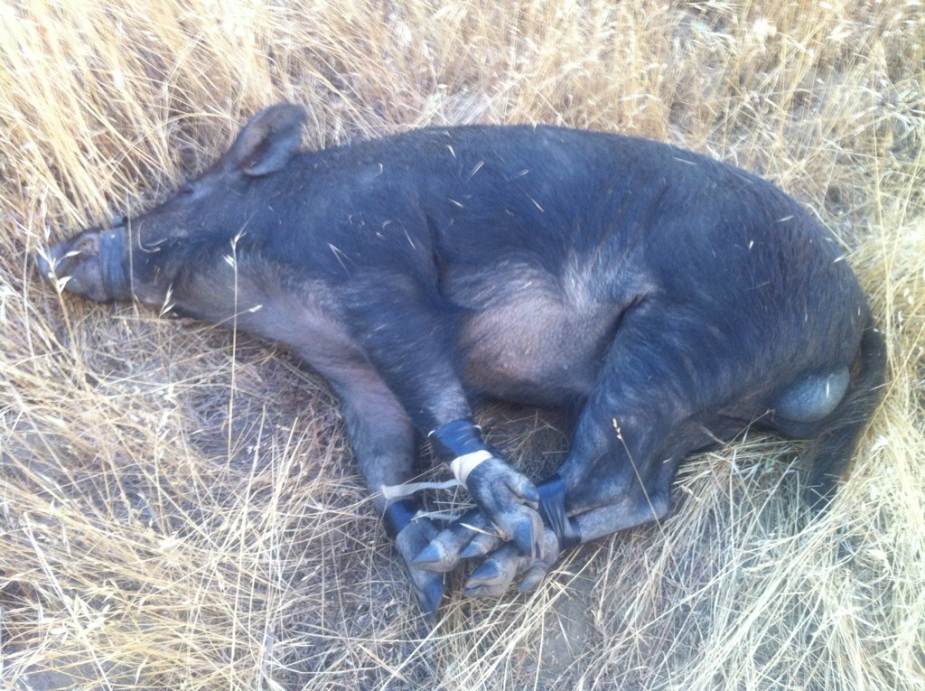 My Jagd at 10 months old with her first pig. Just a little sucker but it was a start.