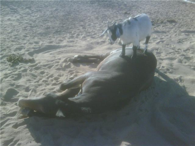 Here's a pic of my 4 year old, she lets this little pygmy goat boss her around.....