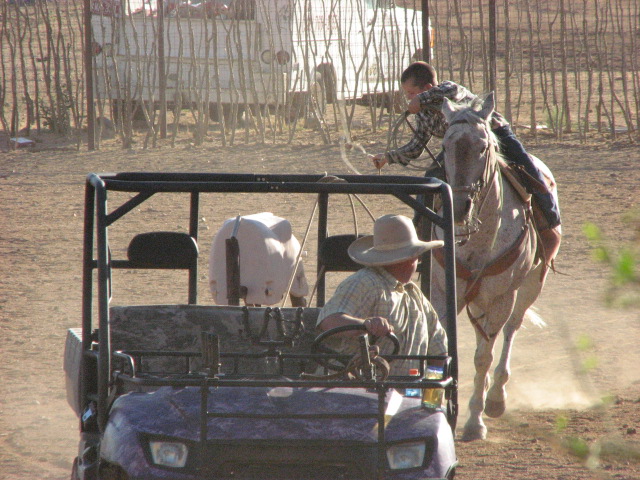 The little guy is pretty good, he's a typical little ranch raised boy...always roping