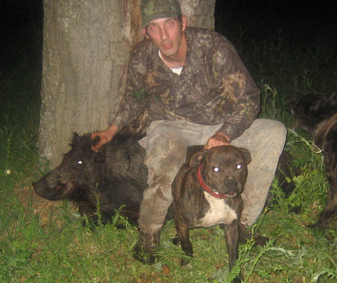 Just introducing myself and my dogs. im 30 yreas old and i started doggin hogs about 6 or 7 years ago and have been hooked ever since. it started with one dog that i got from a friend then i had 2, then 3 and so on ...... befor i knew it i had a solid pack and was catching hogs. i went at it solo for quite a while due to the fact that all i knew were bow hunters. i am no veteran dogger by any means but evrything i have learned has been from first hand experience. alot of trial and error in the beggining, but it has more than paid off. i love it . i lost two of my best strike dogs on new years day so i havent been out since then and man am i going nuts! so i am down to two bitches in heat,one catahoula and her daughter who is half pitt, both of them are great on hogs but need a solid strike dog to lead them. my 13 year old catahoula, who was my first dog, still loves to get out and will find hogs but he had been headed for retirement but his 2 pupils as previosly stated were killed new years day, and the son of my first catch dog a 1/2 cat & 1/2 pitt. he is still on the mend from 1-1-10. he is only 2 but has been on hogs since he was 4 months old. its cool to find a site that is as dedicated to doggin as i am. i cant wait to see som pics and read some stories . ill post up some pics of my last few hunts.