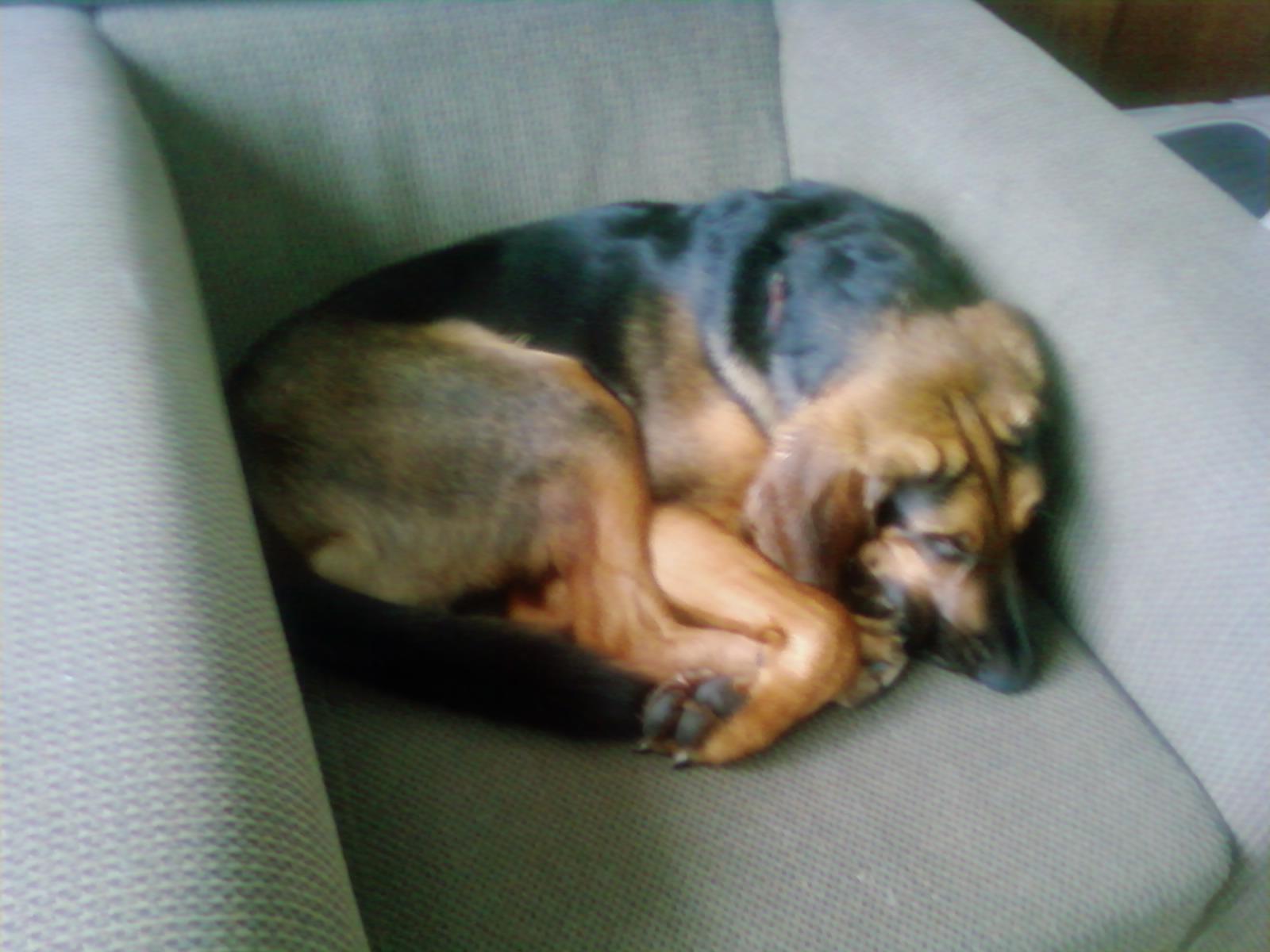 Than the beginning of march he really took a turn for the worse. his speed at going up and down stairs drastically decreased, he started urinating while scratching his neck with his hind leg, and urinating while sleeping, So I took him back to the Vet. Who asked to do X-Rays of his neck or to do a milogram to check for wobblers so i told him to do x-rays since a milogram was like $1000.00. So he did, and when complete informed me; that there was a clear indication on the X-Ray of a malformation of the spine also known as wobblers syndrom. which is incurable.