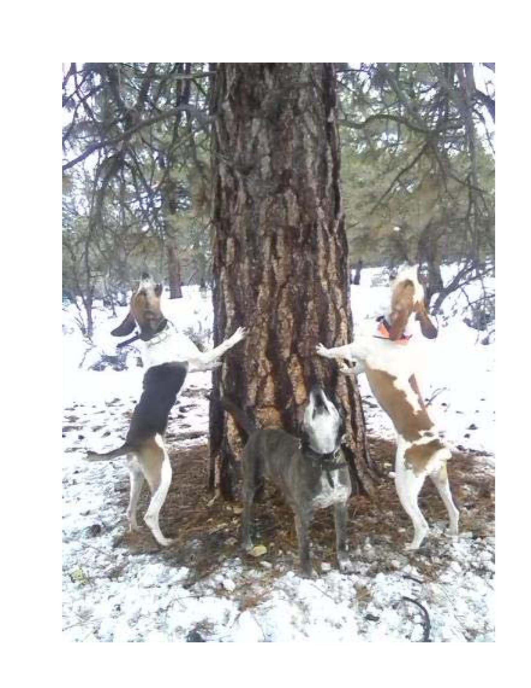 First cat for my new dog Luke. He did good. 2 days on the track. Luke is treeing on the left.