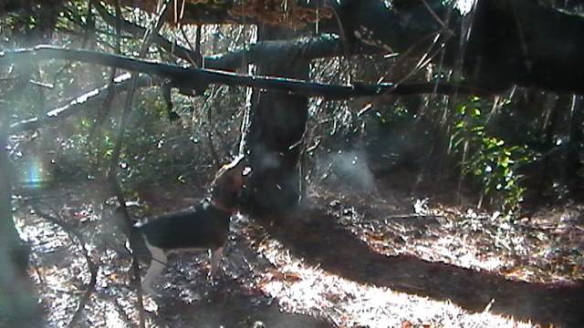 This cat was struck around 10:00 a.m on the sunny side of the mountain he went up a cut and over three ridges and treed up real close to the trunk of the tree couuld not get a good camera angle the dogs did good on this one and only made a couple looses where everything was froze but once he went up they located him the rest is history probaley will run him again later in the season.