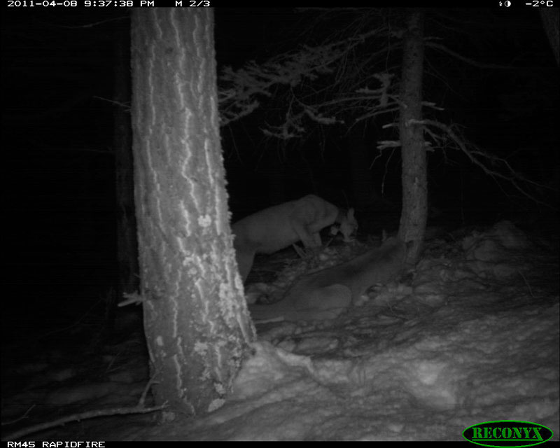One of our collared females was on a mule deer kill so the Techs placed a camera to get some data.