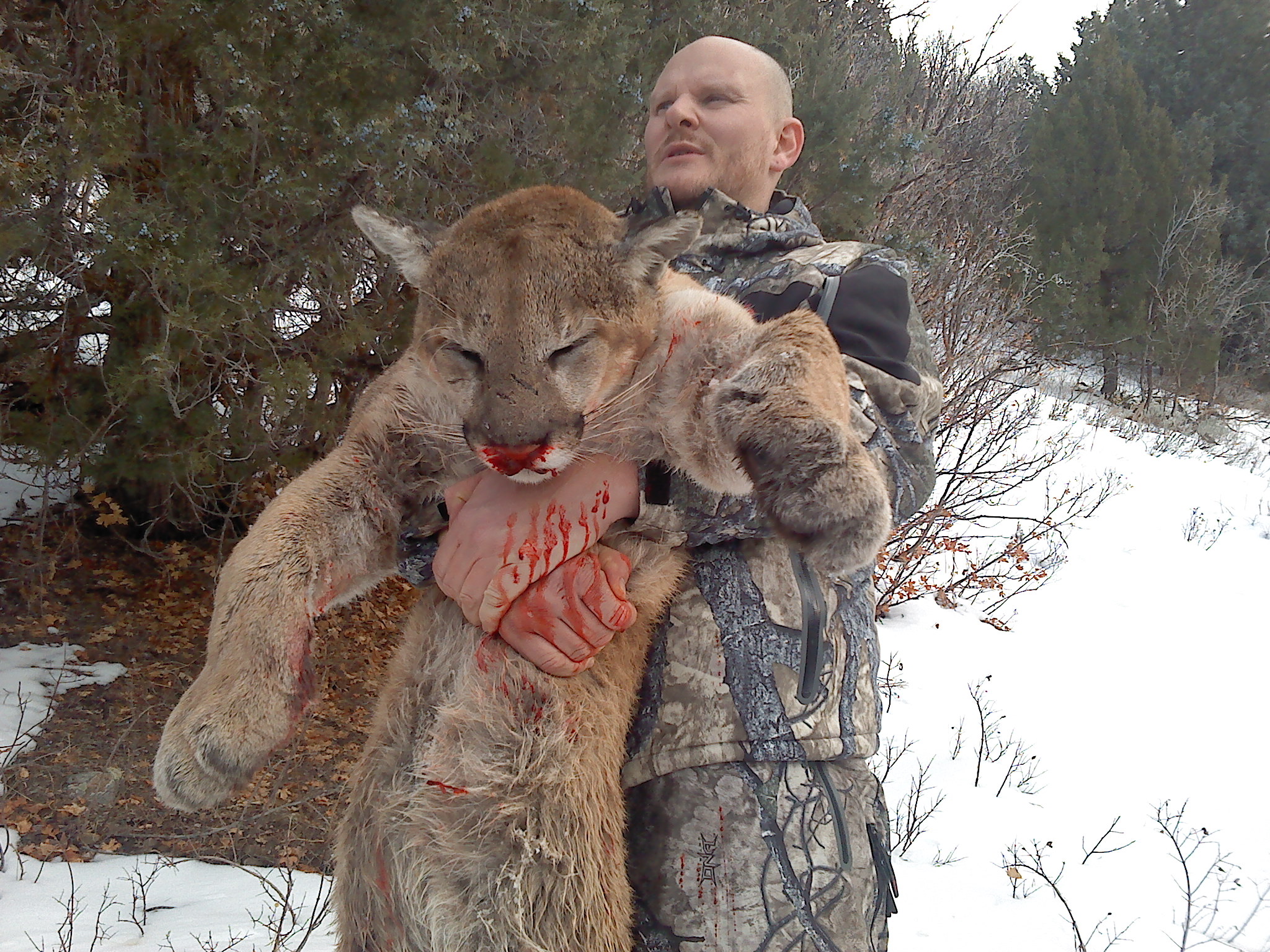 My little female Ginger that i kept out of Toes last year was on her first two lions and made both trees and did a very good job. they where both very long races and the trackes where very cold, Pics. from the last two days.