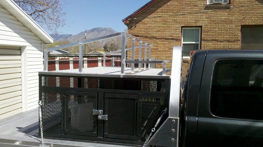 just built this box for my flat bed has 4 compartments will hold 12 to 16 dogs