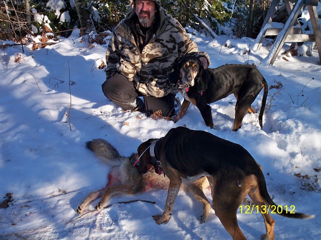 Turned loose on a pretty decent cat and they ended up on a pair of yotes. Turned loose on a cat the other day and they trashed out on a wolf, ended up catching them after about 10 mile run. I shot this coyote in front of my old girl, she's 13 now and may not last the winter so I was happy she got in on a kill. She's usually so far behind she never gets in on a kill...lol She's started a lot of cats for me over the years and it will be sad to see her go.