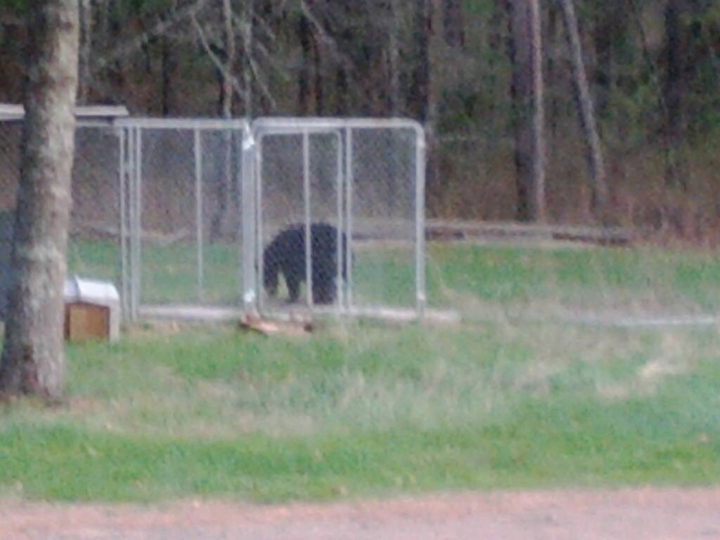 So I woke up this morning to my dogs going nuts, they are usually very quite unless they have a reason to bark. I stick my head out the window, look down and there is a bear INSIDE the dog kennel with the dogs. Took me a minute to make sure I was awake and sure enough my dogs are fighting with a bear. Was about 100 150 pounder wish I would have been fast enough to get a picture. Wasn't sure what I was going to do and about the time I reached for my rifle the bear jumped from the top of the dog house and over the six foot fence. Got to be the dumbest bear ever. was a crazy way to start the day