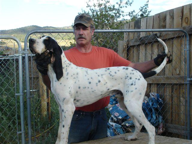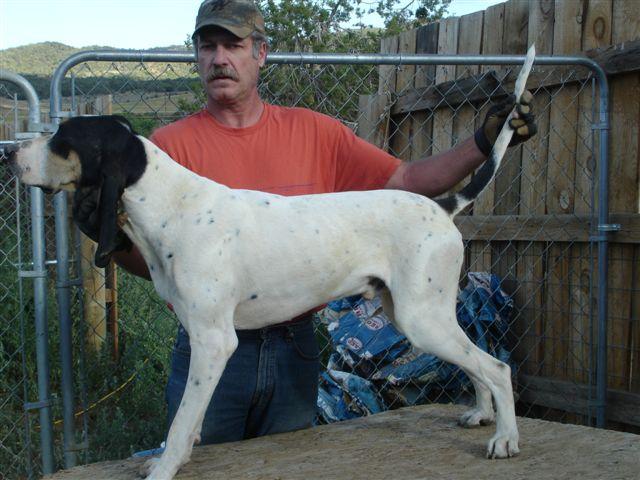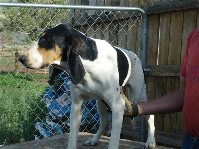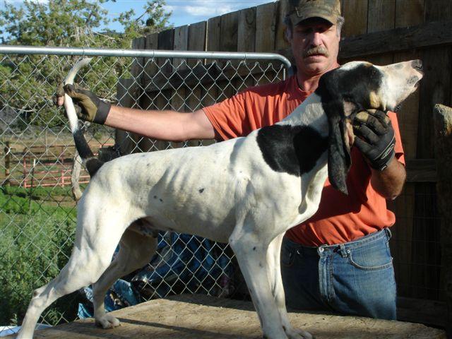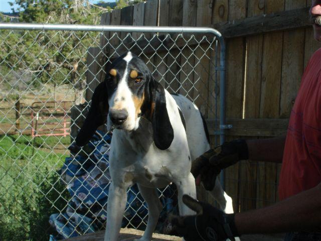 The Gascons are turning 1 year old. I will get pics this weekend. I thought I would write a little about them first. Since there is no open season in CO right now, I am a little hamstrung for game. I've been laying some pretty tough trails for them and have seen way above average results. Not only do they have a very fine nose, but the way they work as a pack, allows them to pick up a tough loss in short order. They can wind scent from an incredible distance. Last night we were out back getting some exersize, when I spotted a barn cat making it's way back to my place through the sage brush. This cat had been out hunting on it's own. There was only the slightest trace of a breeze and they winded it and struck at 400 yds. In no time at all they were on trail and in less time than that, they were treed. To answer alot of people, yes they tree and pretty well at that. I think the trick is to start them treeing in short trees first. Once they figured out that the cat goes up the tree, the rest came naturally. With the quality of nose they have, I would say they will be some awesome locators in tall, thick trees. They have a natural tolerance to the heat and do very well trailing in hot dry conditions. At this point they are doing better than I imagined, I am impressed. They are very easy to disipline and get along with.