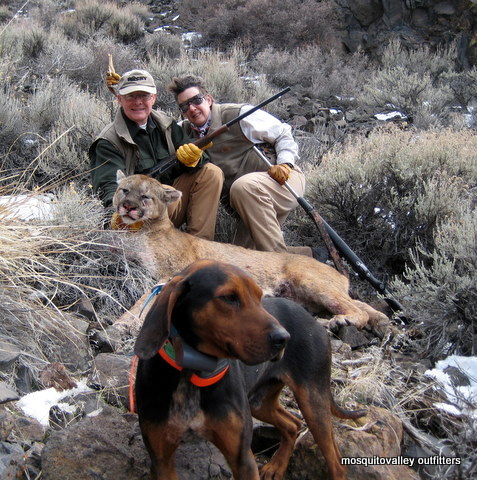 this is a pic of a nice tom lion we killed 2 weeks ago in n. nevada in the dirt. the black-n tan. dog name is slash, the hunters were from washington state, the lion was 174lbs