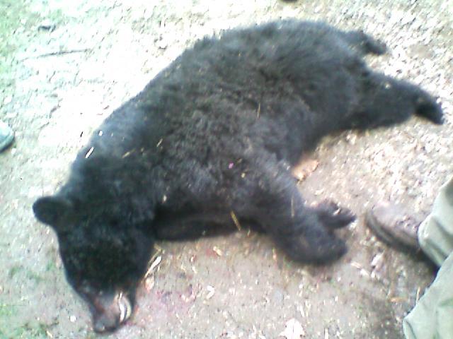 Saturday us and tommy found a bear track after gold Cabin at the first culdasack so tommy and william turned on it they lefty saying nothing when they come back they was barking ever breath they crossed the road and treed it and we turned all the young dogs on it i went in there and killed my first bear