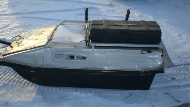We have tried the plastic sled thing a few times. Otter sled work the best, but they are still very tippy on any uneven ground. The best we have used is from a dog sled frame. Was ready to put outrigger skies on if needed. Have not tipped it once though.